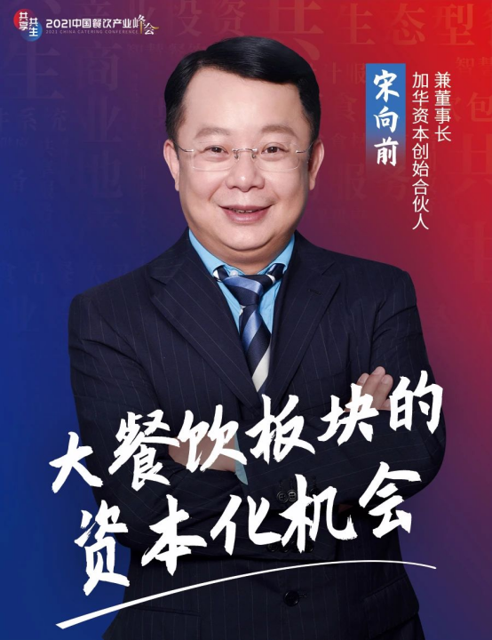 此番,宋向前先生作為演講嘉賓出席“2021中國(guó)餐飲產(chǎn)業(yè)峰會(huì)”,與超過(guò)1200位的餐飲以及相關(guān)產(chǎn)業(yè)的高管與從業(yè)精英,做“大餐飲板塊的資本化機(jī)會(huì)”主題分享。