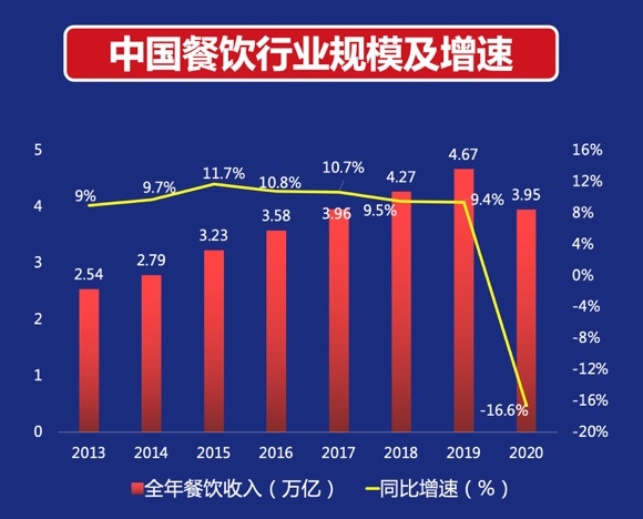不過,雖然新冠疫情對餐飲業(yè)的發(fā)展造成了一定的影響,但是其整體發(fā)展的基本面并沒有改變,2021年的整體反彈是可預(yù)估的。因?yàn)樽愿母镩_放以來,中國餐飲業(yè)的迅猛發(fā)展有目共睹,其增長速度之快、持續(xù)時(shí)間之長在其他行業(yè)中難尋伯仲。