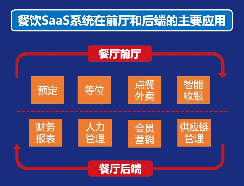 餐飲信息技術(shù)服務(wù)主要指餐飲門店在經(jīng)營過程中使用信息化技術(shù)的服務(wù),包含ERP、CRM、SaaS等服務(wù)軟件以及配套硬件。當(dāng)前,采用云端化架構(gòu)、操作簡易的SaaS服務(wù)來取代傳統(tǒng)軟件成為行業(yè)共識(shí)。