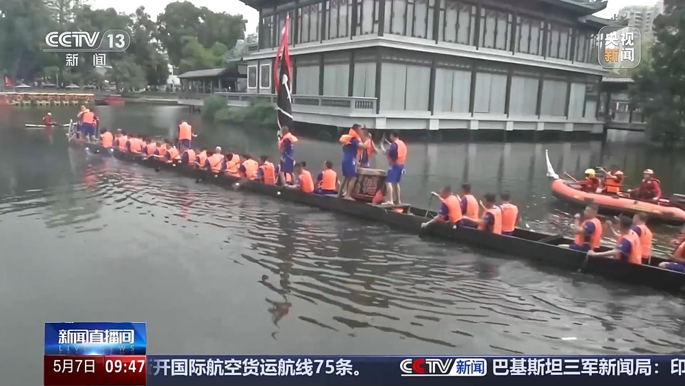 五一假期,廣州市番禺區(qū)上漖村的龍舟制作基地一片忙碌,多艘龍舟舉行了新船駿水儀式。