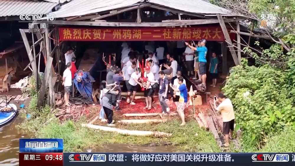 番禺區(qū)上漖村是廣州傳統(tǒng)的龍舟制作和維修基地,基地內(nèi)有多個(gè)龍舟廠,端午臨近,各龍舟廠迎來(lái)新船交付旺季。