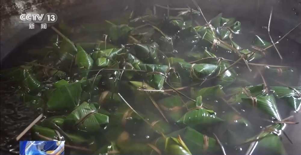 在烹飪環(huán)節(jié),用大鍋裝上山泉水,趁著“冷水冷鍋”時,將一顆顆粽子依次投入水中,隨著時間的熬煮,屋子里冒著騰騰的熱氣,粽香四溢。
