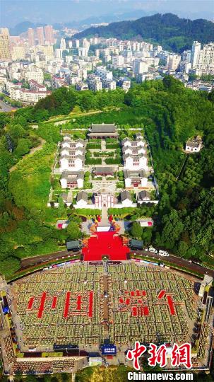 “最多人一起包粽子挑戰(zhàn)吉尼斯世界紀(jì)錄”活動(dòng)在秭歸鳳凰山屈原祠舉行。 周星亮 攝