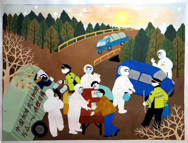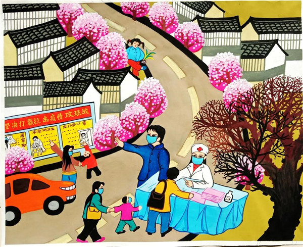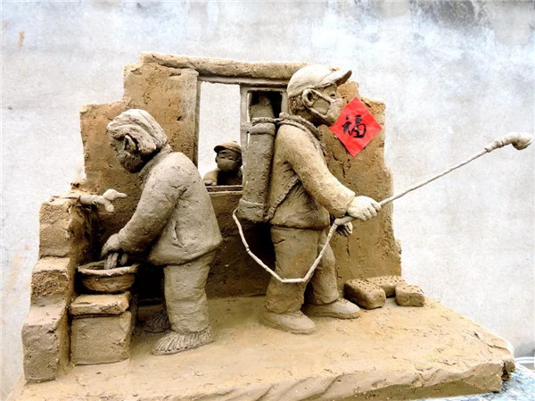 面塑《督查疫情獻(xiàn)愛心 眾志成城戰(zhàn)瘟神》