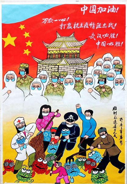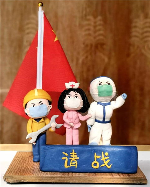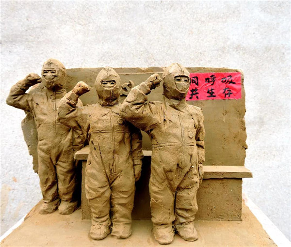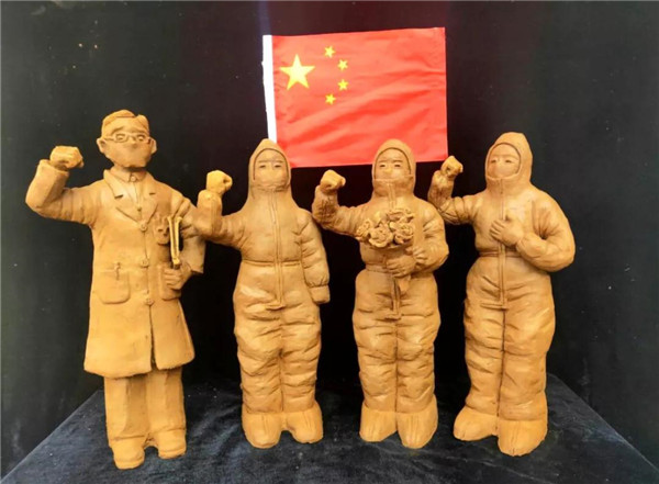 泥塑《中國加油 武漢加油》