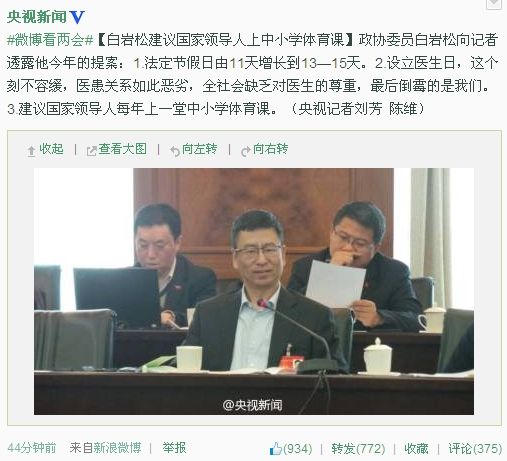 關(guān)鍵詞:白巖松;醫(yī)生;法定節(jié)假日;政協(xié)委員;兩會(huì);