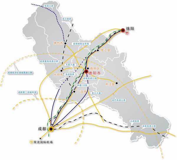 據(jù)悉,德陽交通以公路為主、鐵路為輔,航空依托成都、綿陽,水路依托樂山、宜賓。全市高速公路總體規(guī)劃里程467公里,其中已建成204公里,含成綿、成南、成綿復(fù)線、成德南和成都二繞等高速公路。