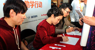 塔斯肯萱萱侯磊為粉絲愛(ài)心簽名