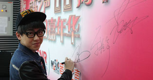 塔斯肯萱萱侯磊為粉絲愛(ài)心簽名