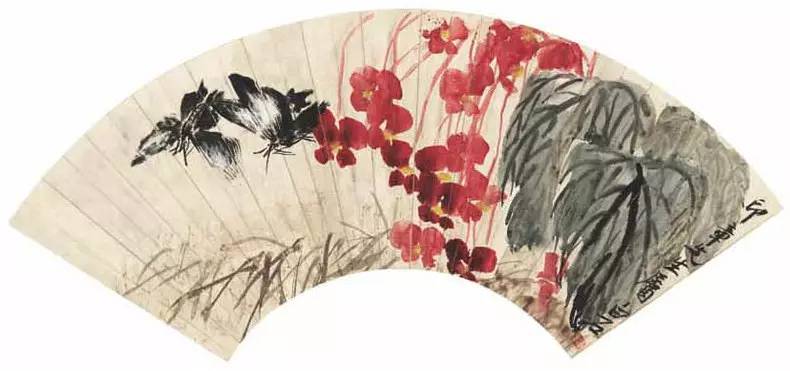 齊白石 戀花雙蝶扇
