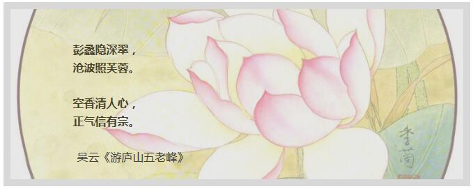 柏謙用唐朝詩人吳云的《游廬山五老峰》,形象的詮釋了《竹枝蓮花圖》的意境之美。