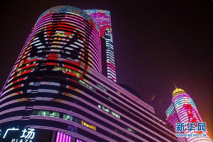 西安最先進(jìn)的樓體燈光秀亮相高新區(qū)。2月17日,西安市高新區(qū)唐延路上的多棟大樓被美輪美奐的燈飾裝扮得流光溢彩。
