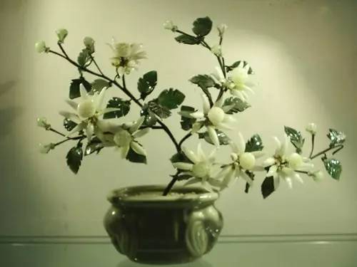料器,需有料方成器。從加工技法上來說,料鳥獸、料花等料器制作還不是最大的難點(diǎn),關(guān)鍵性的技術(shù)在于配料,也就是料棍的制作配方。邢蘭香介紹,北京料器廠倒閉后,大部分傳統(tǒng)配方已經(jīng)失傳,由遺存下來的老料制成的作品已經(jīng)成為絕品。在邢云香的店中有一對“相濡以沫”馬,是仿芙蓉玉老料制成,配方中有黃金,非常稀有。而她的鎮(zhèn)店之寶----仿唐三彩“絲綢之路”是由配方已經(jīng)失傳的花料制成,既有玉石的質(zhì)感,又兼具陶瓷的細(xì)膩,很多人想高價(jià)收藏,都被拒絕了。