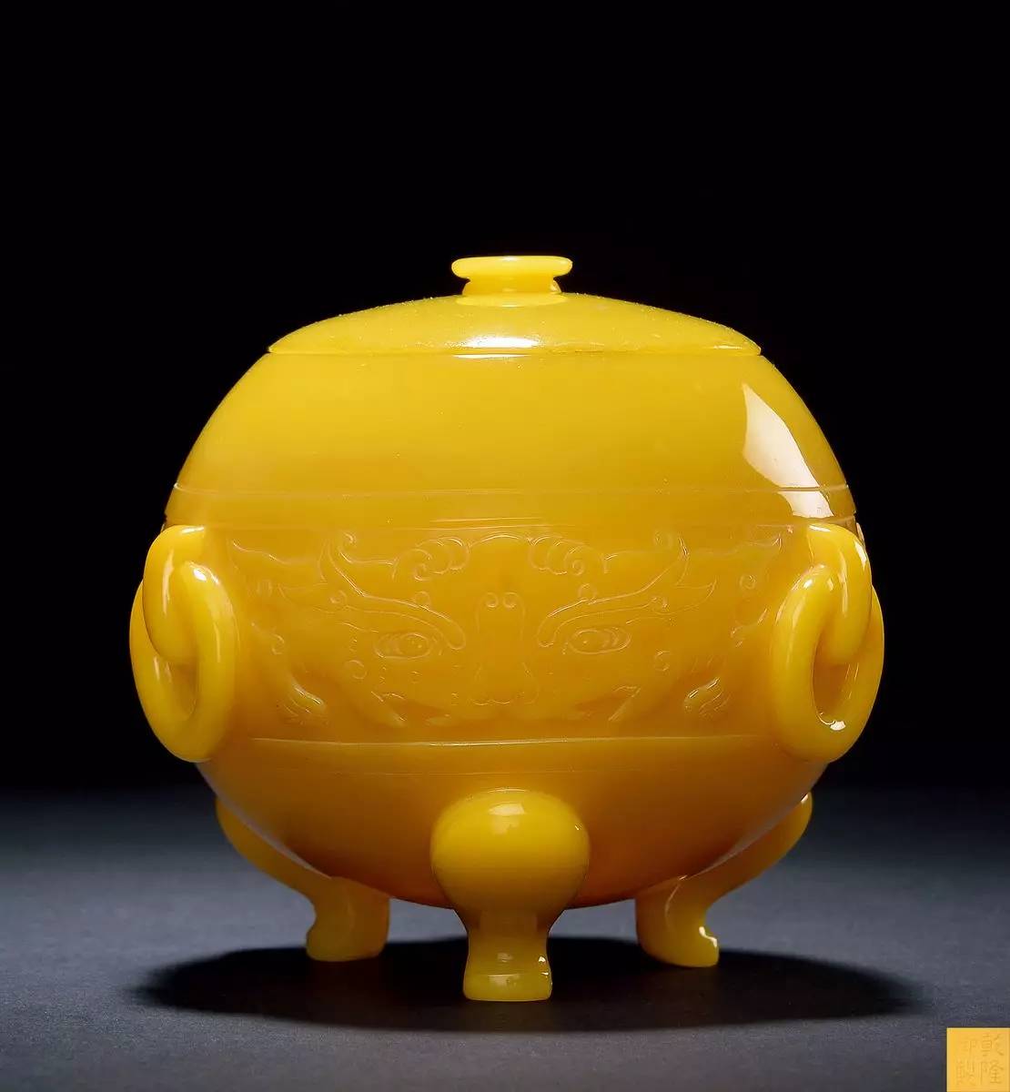 清乾隆 雞油黃料饕餮紋雙耳爐
