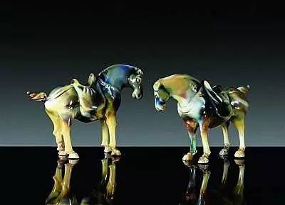 仿唐三彩花料馬一對(料器) 邢蘭香