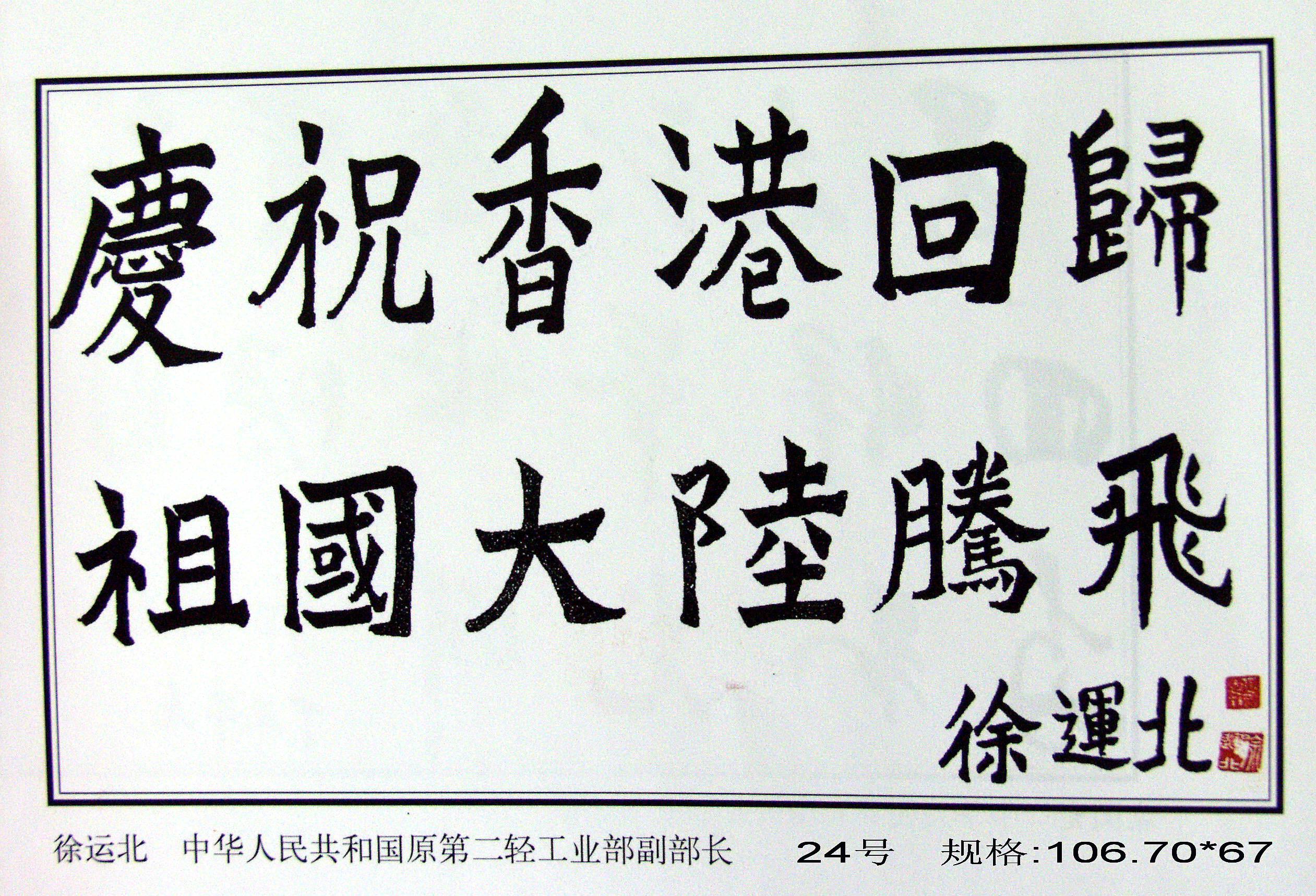 為了留住這一歷史性時刻,也為了見證香港這百年滄桑的歷史,原國務(wù)院老干部局、中國世界民族文化交流促進會藝術(shù)委員會、中國政策科學(xué)研究會老年政策委員會、北京大運河翰林文化開發(fā)中心共同邀請四百多位老領(lǐng)導(dǎo)、老將軍、老書畫藝術(shù)家、社會知名人士及優(yōu)秀中青年畫家,揮毫潑墨,創(chuàng)作了《迎香港回歸首都百名老人書畫百米長卷》,征集了四百多幅精美作品。同時,精選不同藝術(shù)特色和風(fēng)格的作品,裝裱成卷,以珍藏這筆巨大的精神文化財富。