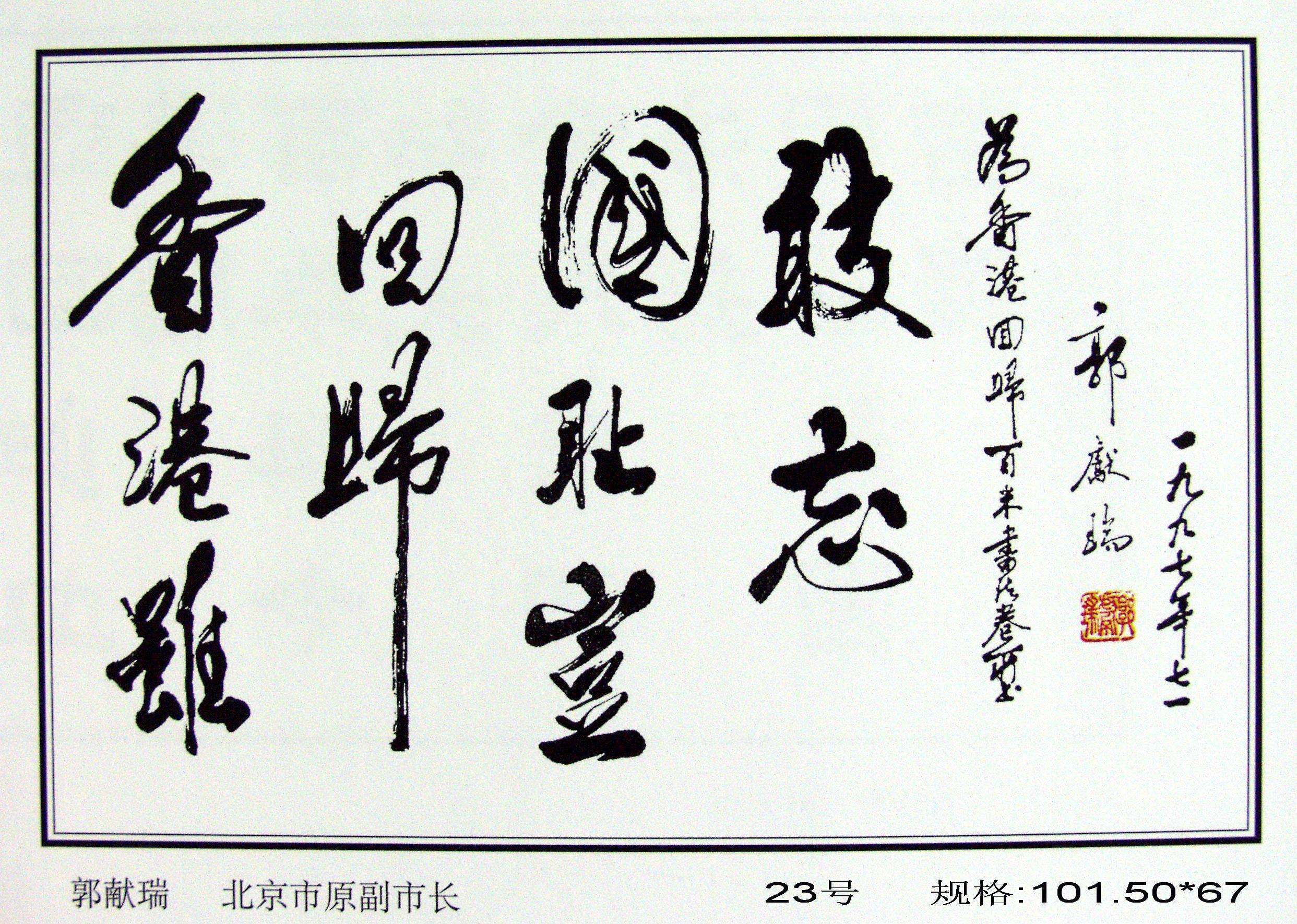 全國政協(xié)原副主席馬文瑞“為迎香港回歸百米書畫長卷題字留念”
