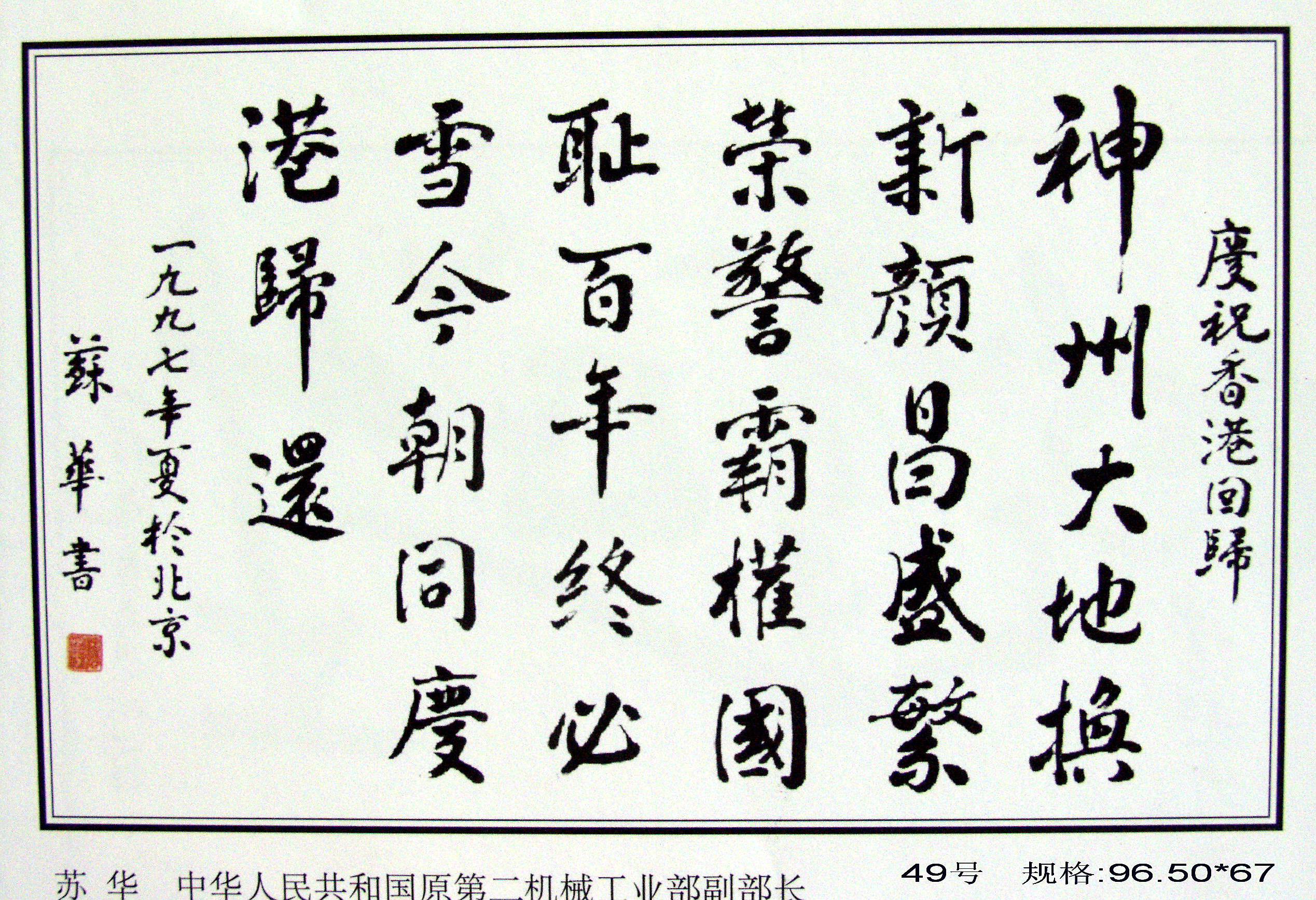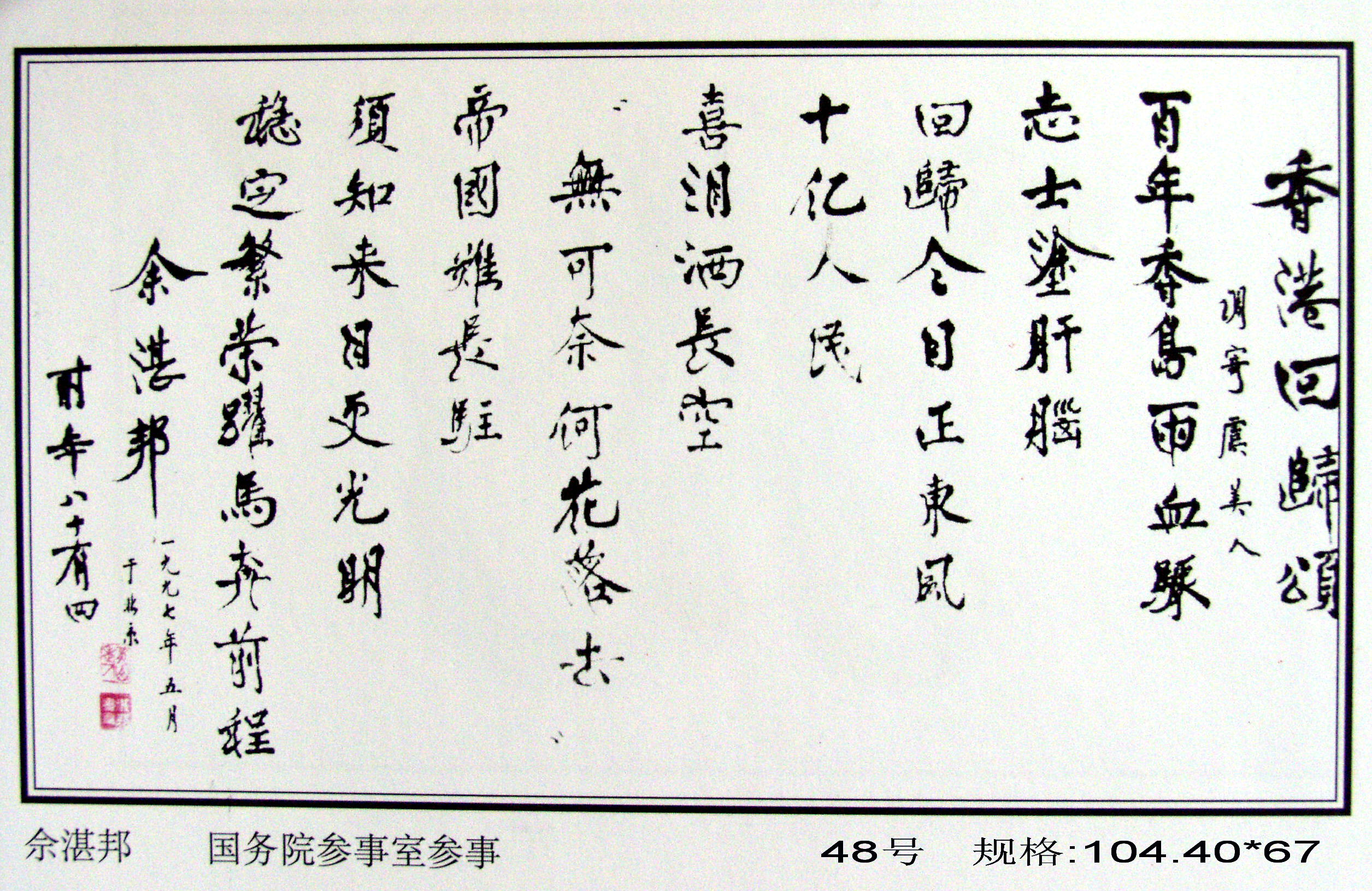 全國政協(xié)原副主席馬文瑞“為迎香港回歸百米書畫長卷題字留念”