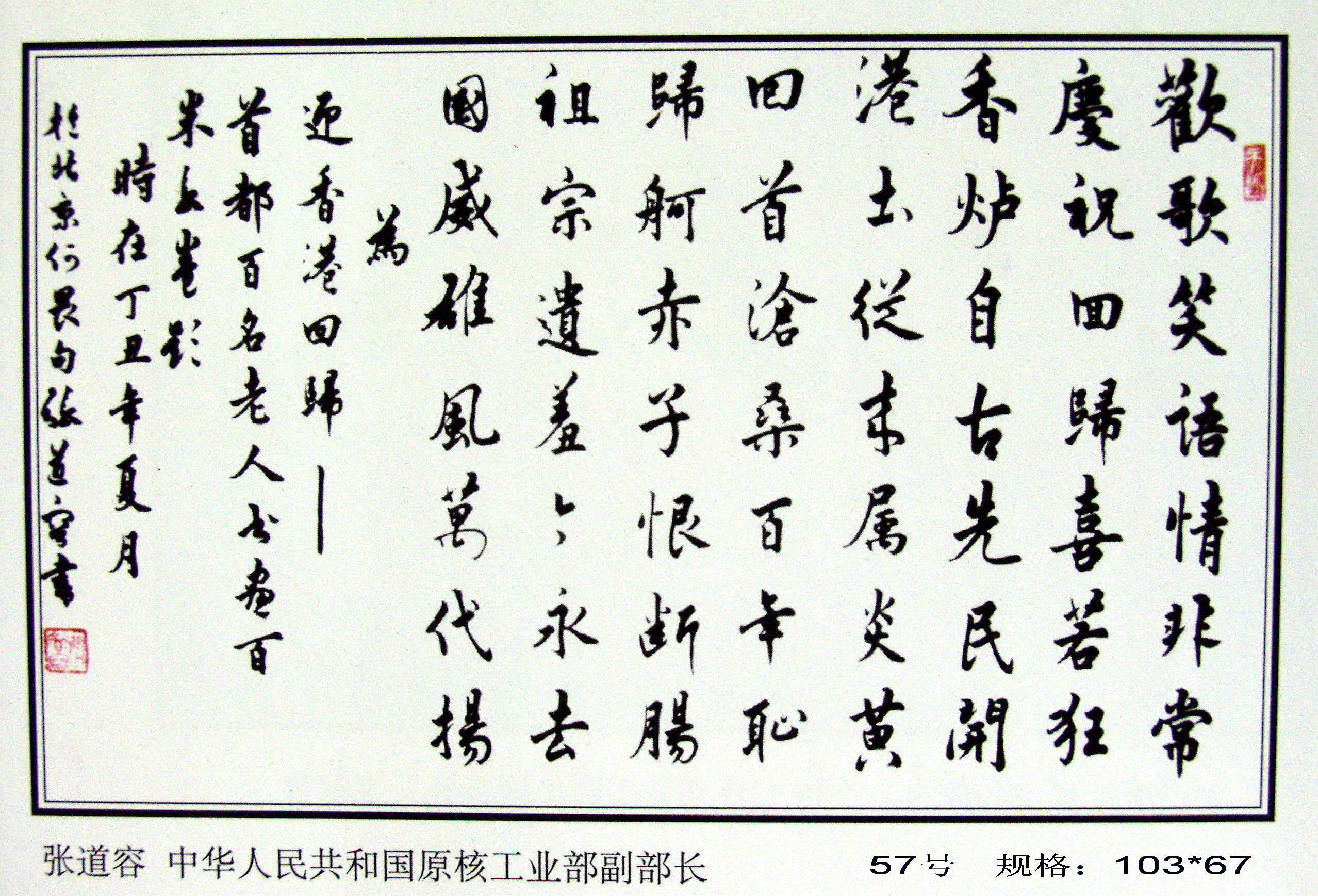 全國(guó)政協(xié)原副主席馬文瑞“為迎香港回歸百米書(shū)畫(huà)長(zhǎng)卷題字留念”