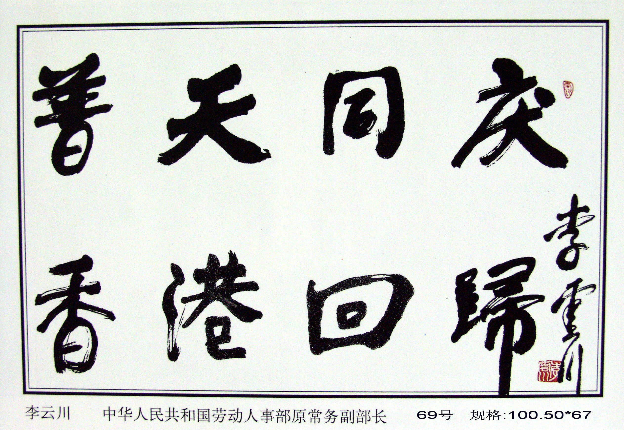 為了留住這一歷史性時刻,也為了見證香港這百年滄桑的歷史,原國務(wù)院老干部局、中國世界民族文化交流促進(jìn)會藝術(shù)委員會、中國政策科學(xué)研究會老年政策委員會、北京大運河翰林文化開發(fā)中心共同邀請四百多位老領(lǐng)導(dǎo)、老將軍、老書畫藝術(shù)家、社會知名人士及優(yōu)秀中青年畫家,揮毫潑墨,創(chuàng)作了《迎香港回歸首都百名老人書畫百米長卷》,征集了四百多幅精美作品。同時,精選不同藝術(shù)特色和風(fēng)格的作品,裝裱成卷,以珍藏這筆巨大的精神文化財富。