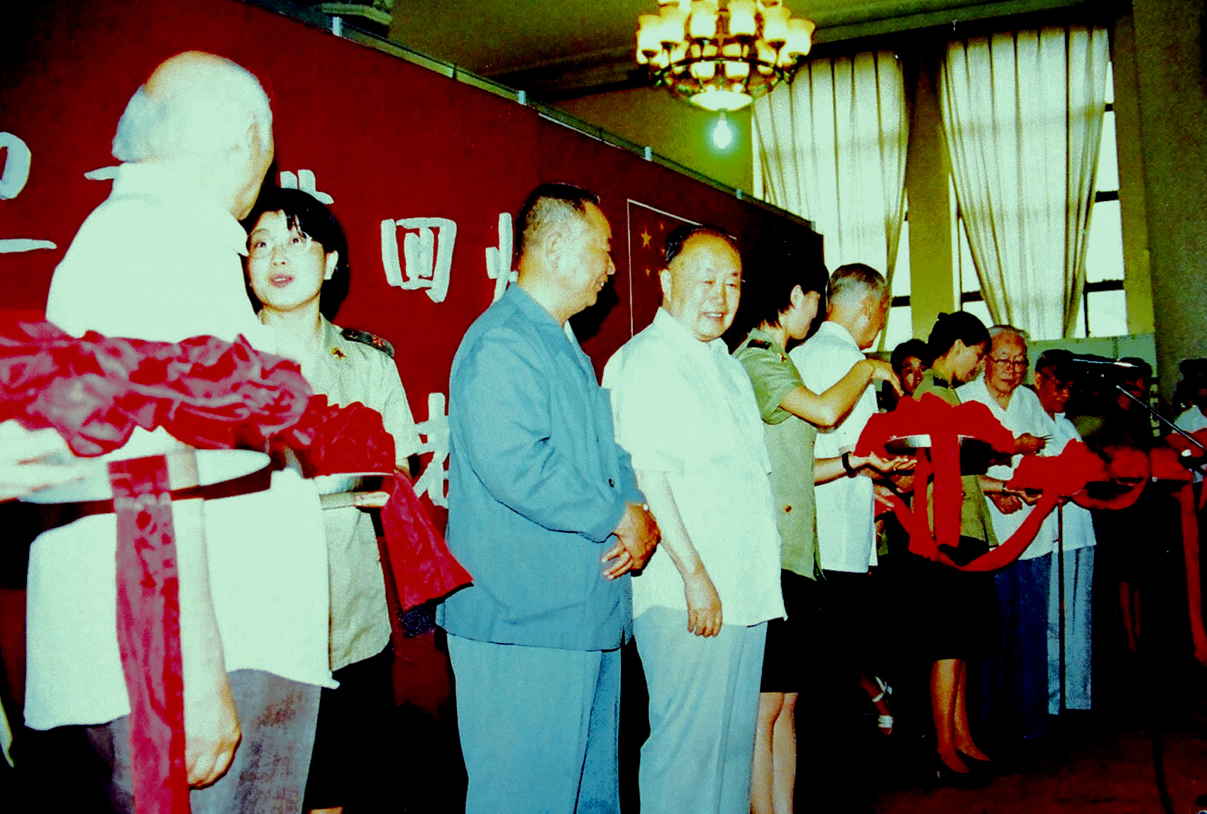 全國政協(xié)原副主席馬文瑞、中國人民解放軍空軍部隊原司令員張廷發(fā)、北京市原市長焦若愚等領(lǐng)導(dǎo)參加“迎香港回歸-首都百名老人書畫百米長卷展”開幕式并剪彩