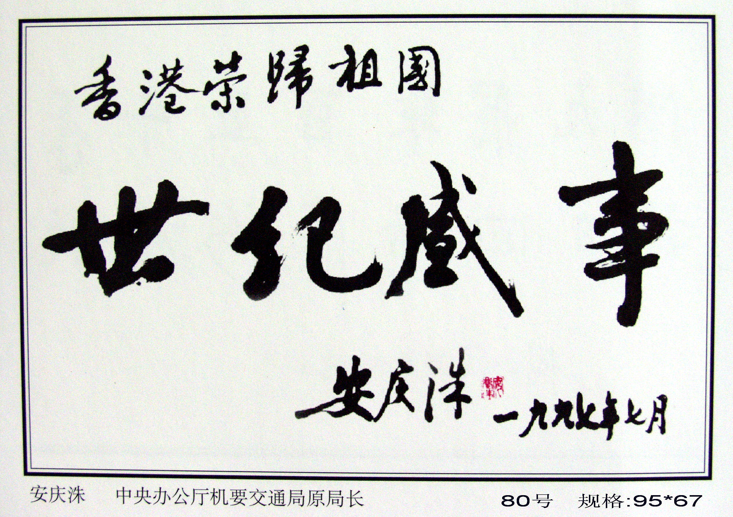 全國(guó)政協(xié)原副主席馬文瑞“為迎香港回歸百米書(shū)畫(huà)長(zhǎng)卷題字留念”