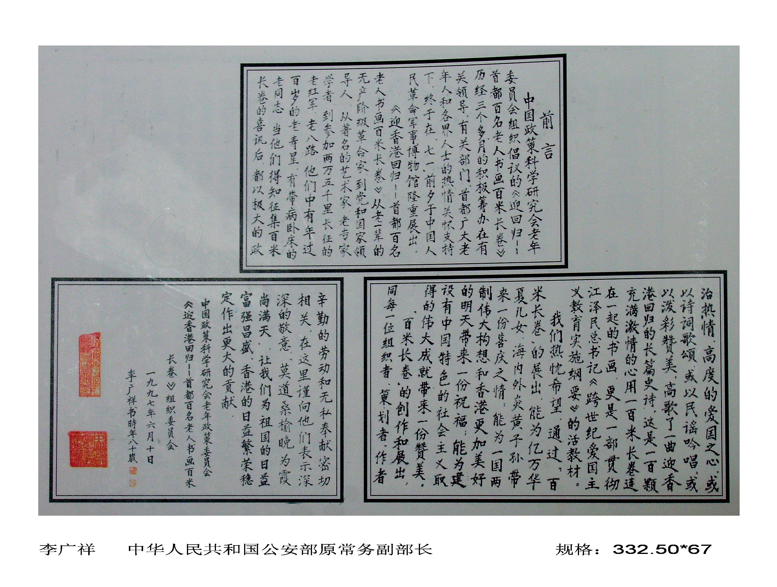 全國政協(xié)原副主席馬文瑞“為迎香港回歸百米書畫長卷題字留念”