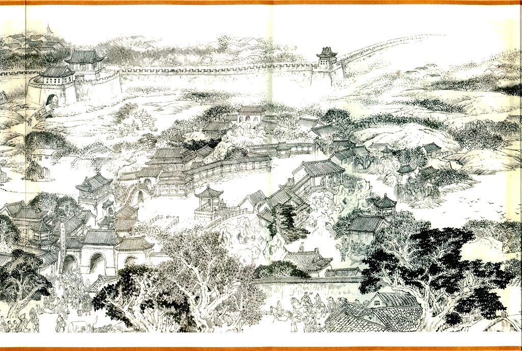 《京門(mén)九衢圖》所展現(xiàn)的老北京城以宮城為核心,宮城中的中軸線(xiàn)縱貫?zāi)媳保谥休S線(xiàn)兩側(cè),一些壇廟、寺觀、苑林、府第、胡同以及大片四合院民居依次對(duì)稱(chēng)布局。格局嚴(yán)謹(jǐn)、層次分明形成了這座著名都城獨(dú)具特色的整體風(fēng)貌。