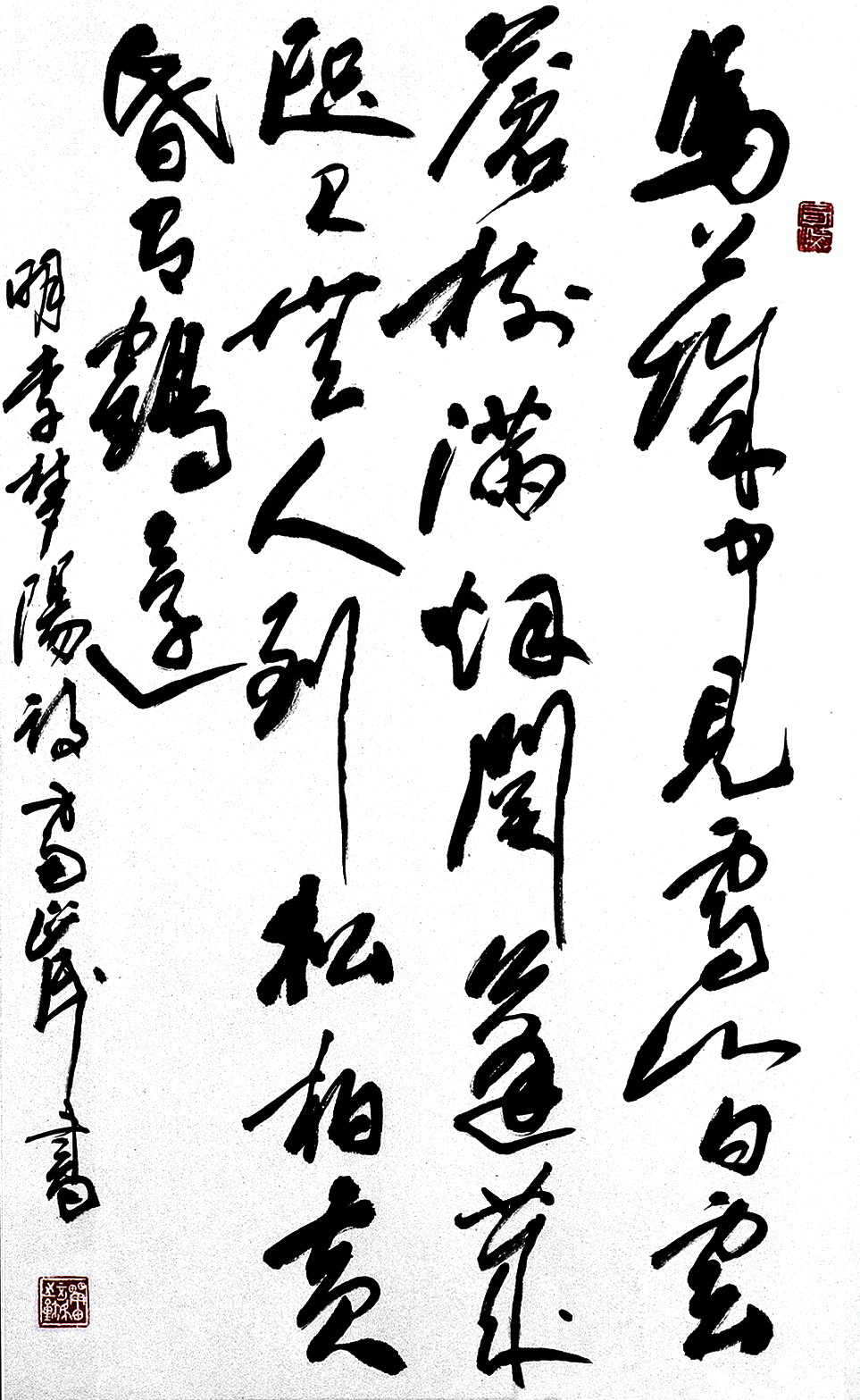 馬上城中見雪山,白云蒼樹滿煙關。