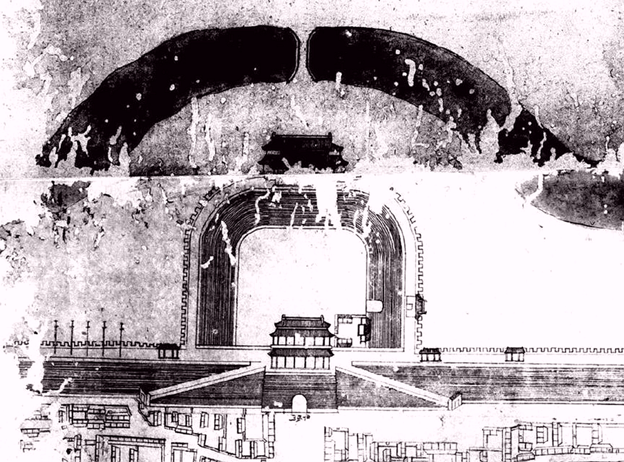 元至正二十九年(1369)元順帝又令修筑包括平則門在內的各城門甕城及護城河吊橋。明代在大都城基礎上營建北京城,改11門為9門,其西城垣除北端縮短2.5公里并取消肅清門,南端展拓1公里外,其余基本未動,平則門亦沿襲舊稱。明正統(tǒng)元年(1436)詔修內城9門城樓,至正統(tǒng)四年完工,平則門改稱阜成門,修筑城樓、城門、箭樓、甕城、甕城門各一,其規(guī)制較元大都城門為高。