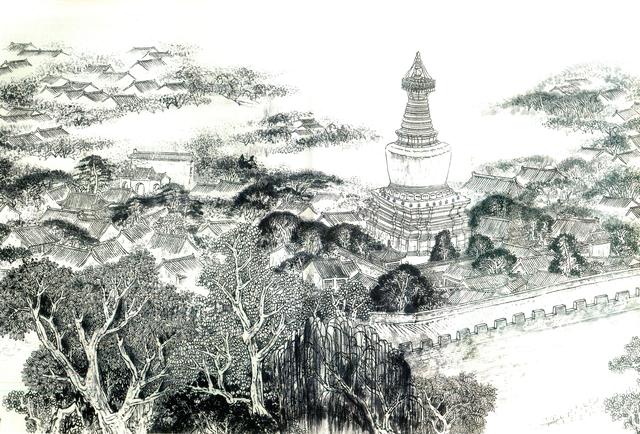 《京門(mén)九衢圖》所展現(xiàn)的老北京城以宮城為核心,宮城中的中軸線縱貫?zāi)媳,在中軸線兩側(cè),一些壇廟、寺觀、苑林、府第、胡同以及大片四合院民居依次對(duì)稱布局。格局嚴(yán)謹(jǐn)、層次分明形成了這座著名都城獨(dú)具特色的整體風(fēng)貌。