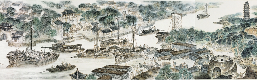 緣于“北京是運(yùn)河漂來(lái)的”,北京大運(yùn)河翰林文化開(kāi)發(fā)中心組織書(shū)畫(huà)家、專家、學(xué)者三百余人,耗資逾千萬(wàn)元,歷時(shí)八年組織創(chuàng)作了《京門(mén)九衢圖》及《古運(yùn)回望圖》姊妹篇。主創(chuàng)團(tuán)隊(duì)成員83人均為國(guó)家頂級(jí)畫(huà)家,采用中國(guó)傳統(tǒng)繪畫(huà)的長(zhǎng)卷形式進(jìn)行創(chuàng)作和表現(xiàn),以“工兼寫(xiě)”的手法,還原康乾盛世老北京城各城門(mén)的功能作用和規(guī)劃藝術(shù),采用由外觀內(nèi)的方式,以通州大運(yùn)河入通惠河過(guò)西便門(mén)講起,繞皇城后至廣安門(mén)結(jié)束。