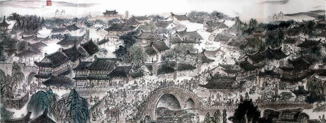 全卷長210米,高0.83米,用中國畫獨特的散點透視手法與現(xiàn)代水墨技法融為一體,完美地將漕運鼎盛時期京杭大運河的風貌躍然紙上,展現(xiàn)世人。