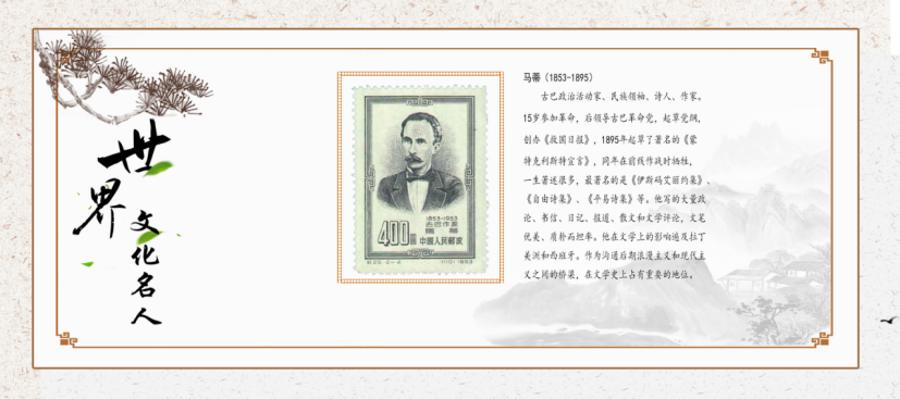 (第四圖為“古巴作家馬蒂”,圖案為馬蒂肖像畫)?