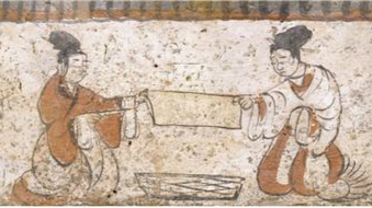 “十畝地八畝寬,里面坐個女兒官,千根箏,萬根線,梭子手中來回穿。腳一踏,手一扳,十指蓮花都動彈?棾刹,做衣衫,娃娃穿了擋風寒!,這首典型的豫西兒歌所表現(xiàn)的是女人們的織布過程,織女為將軍,指揮手下一梭萬線,也體現(xiàn)了中國古代對女性勞作的尊重。