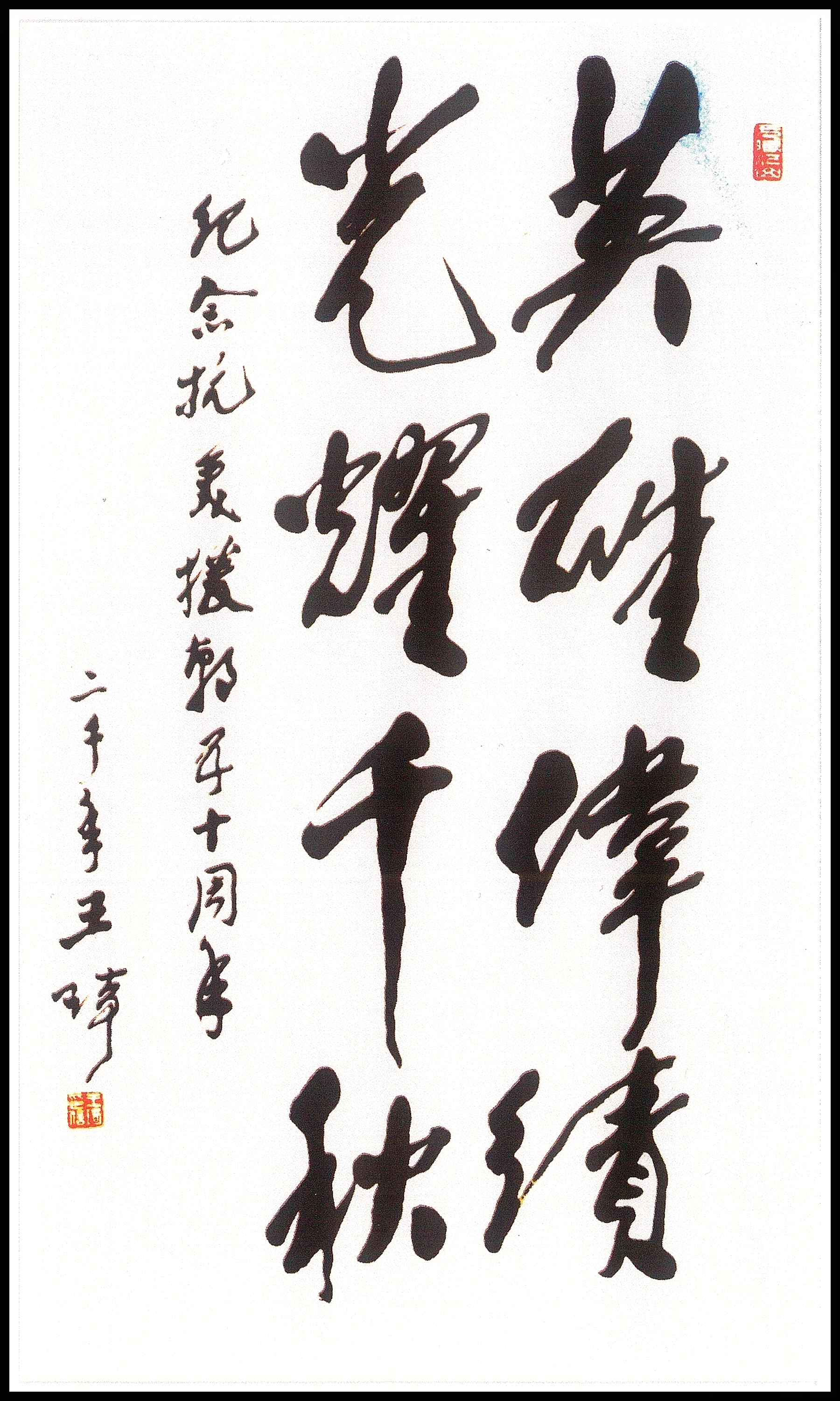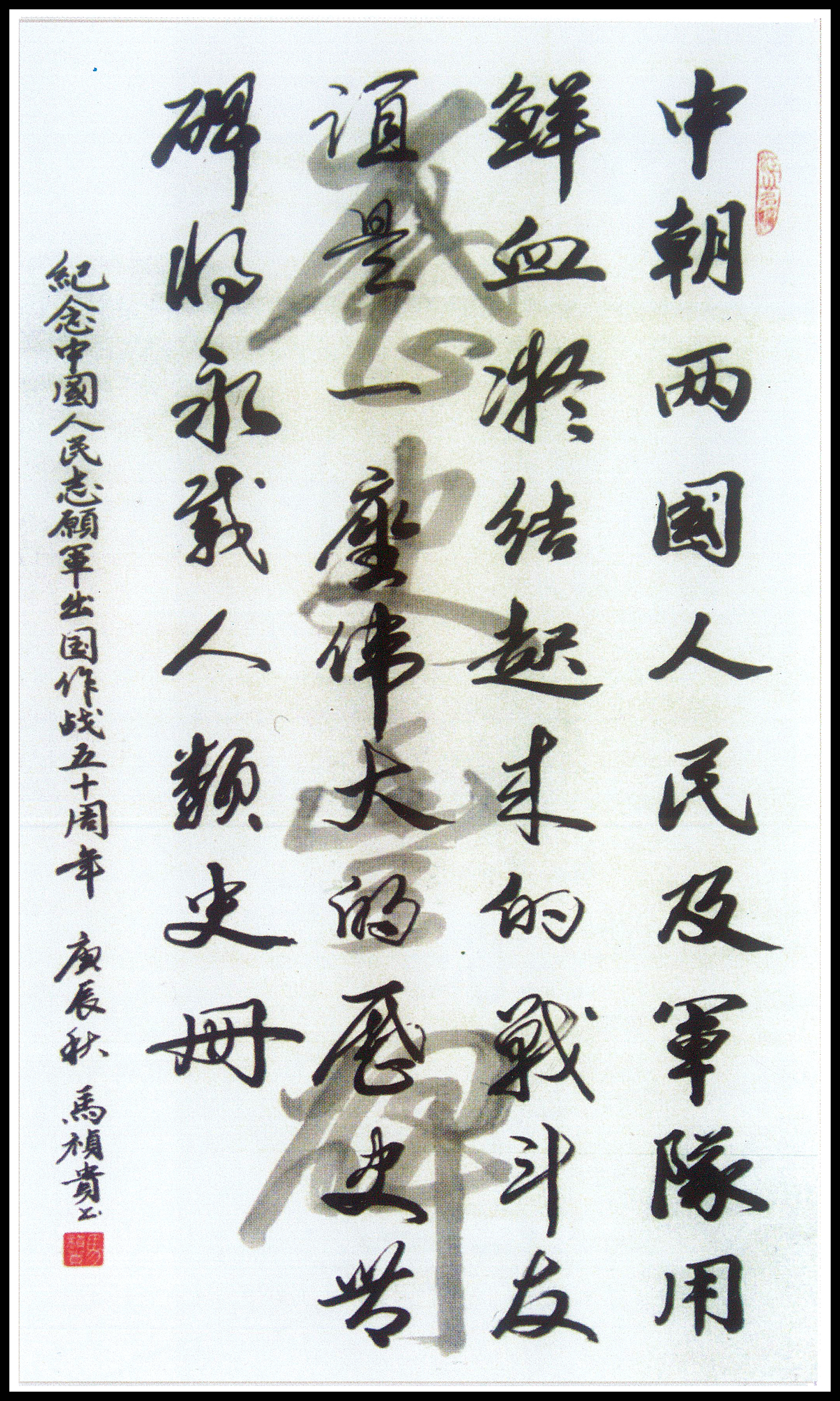 2000年12月12日至17日,北京大運(yùn)河翰林文化開(kāi)發(fā)中心在北京中國(guó)人民革命軍事博物館隆重舉辦《紀(jì)念中國(guó)人民志愿軍抗美援朝出國(guó)作戰(zhàn)五十周年書(shū)畫(huà)大展》,目的是要弘揚(yáng)志愿軍的愛(ài)國(guó)主義、革命英雄主義、無(wú)私奉獻(xiàn)和國(guó)際主義精神,通過(guò)緬懷先烈們戰(zhàn)爭(zhēng)中所呈現(xiàn)的各族人民不畏強(qiáng)暴、維護(hù)和平的決心和不可戰(zhàn)勝的力量,充分體現(xiàn)中華兒女愛(ài)國(guó)主義、國(guó)際主義和革命英雄主義的浩然正氣,讓中國(guó)得到世界人民的尊敬。畫(huà)展由中國(guó)老年書(shū)畫(huà)研究會(huì)、中國(guó)人民革命軍事博物館、北京大運(yùn)河翰林文化開(kāi)發(fā)中心共同舉辦。
