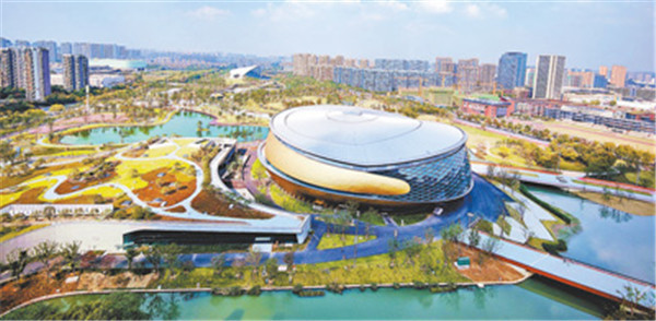 。▓D為浙東運(yùn)河余姚段船只航行在生態(tài)環(huán)境優(yōu)美的河道上)