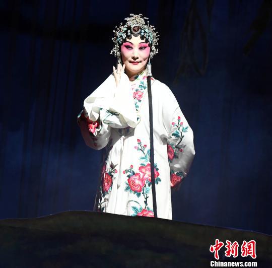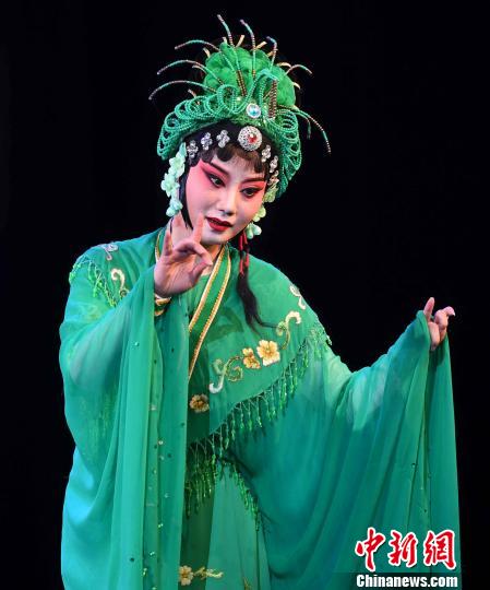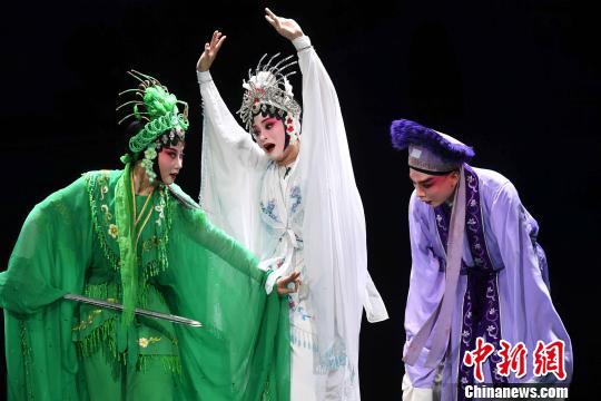 福建京劇院國(guó)家一級(jí)演員、中國(guó)戲劇梅花獎(jiǎng)得主孫勁梅在京劇《白蛇傳·合缽》中飾演白素貞!⒖筛z