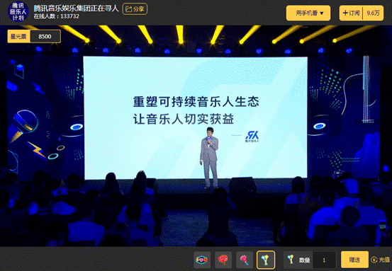 解決困境并非一朝一夕的口頭承諾。彭迦信指出,騰訊音樂娛樂集團在盜版橫行的年代就已經(jīng)開始堅持正版化,并已積累十多年的精耕細作經(jīng)驗。集團旗下酷狗音樂、QQ音樂、酷我音樂、酷狗直播、5Sing、全民K歌六大音樂平臺上已經(jīng)駐留了相當多的音樂人,為平臺上的音樂人發(fā)布超過10萬張專輯,但彭迦信表示“還遠遠不夠”。之前六大平臺雖然已積累出一定成績,但長期彼此獨立,并沒有充分發(fā)揮平臺優(yōu)勢!跋Mㄟ^打通六大平臺的資源,最大化地解決音樂人的痛點,為音樂人帶來更多實際化的幫助!迸礤刃胚表示,騰訊音樂娛樂集團將為音樂人提供作品發(fā)行、宣傳推廣、數(shù)據(jù)管理、演出支持、作品收益、版權(quán)管理、權(quán)利保護甚至教育培訓(xùn)服務(wù),一站式解決音樂人的痛點需求,并且“未來三年內(nèi)不計成本支持原創(chuàng)音樂人”,為原創(chuàng)音樂人提供5億的收入,讓平臺以及平臺上的粉絲成為好音樂的伯樂。