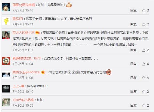 令人沒有想到的是,比質(zhì)疑來的更快更多的是四海八荒的聲援,很多網(wǎng)友稱自己并不是黃國倫的粉絲,但是看到這封信之后,開始追隨,并為這個音樂老兵追夢人加油打氣。