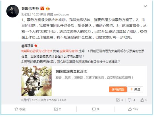 8月2日,黃國倫鳥巢演唱會第一次微訪談,許多網(wǎng)友向他詢問接下來的形成安排。黃國倫的微博就像一個記事本,記錄了他和支持他的朋友們每天為“9.23鳥巢演唱會”付出的一點一滴,毫無保留。回答網(wǎng)友行程安排問題上也是非常坦白:“接下來是票務(wù)啦,十萬人的場子。當(dāng)然還有音樂總監(jiān),我希望你們都來啊,把鳥巢坐滿,大家來了,就一定要呈現(xiàn)最好的音樂現(xiàn)場!