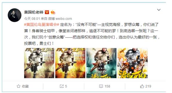 隨著各項進展的落實,黃國倫越來越不像是“發(fā)瘋”,而越來越像音樂人版堂吉訶德——為關(guān)注他信任他的千萬網(wǎng)友“圓夢”。網(wǎng)友希望黃國倫贏了這場fight,希望這個人代表他們沖進鳥巢這個“終極目標(biāo)”,實現(xiàn)“不可能”。