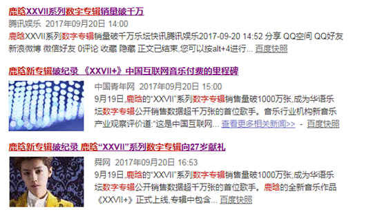 數(shù)字專輯并不算一個(gè)新鮮事物。2015年,國(guó)家版權(quán)局下發(fā)《關(guān)于責(zé)令網(wǎng)絡(luò)音樂(lè)服務(wù)商停止未經(jīng)授權(quán)傳播音樂(lè)作品的通知》,音樂(lè)迎來(lái)了版權(quán)時(shí)代,隨之而來(lái)的,便是歌曲付費(fèi)服務(wù)和“數(shù)字專輯”這一概念的誕生。同年,酷狗、酷我發(fā)行了24張數(shù)字專輯,總銷量超過(guò)300萬(wàn)張。20元一張的周杰倫專輯在15年已經(jīng)售出16萬(wàn)張,而在近期,鹿晗的“XXVII”系列數(shù)字專輯銷售量更是破1000萬(wàn)張,成為華語(yǔ)樂(lè)壇數(shù)字專輯公開(kāi)銷售數(shù)據(jù)超千萬(wàn)張的首位歌手。