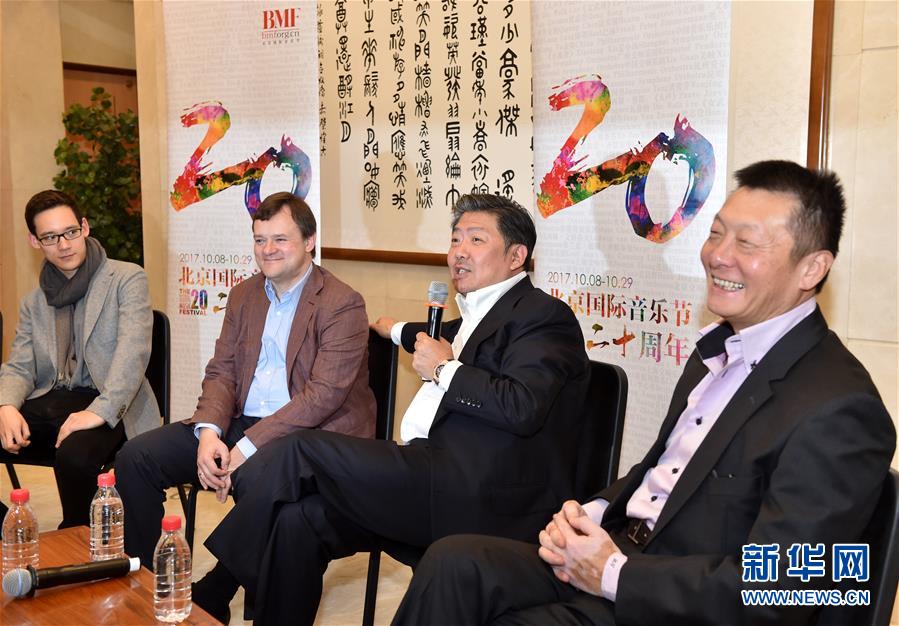 10月6日,北京國(guó)際音樂(lè)節(jié)藝術(shù)總監(jiān)余隆(右二)回答記者提問(wèn)。當(dāng)日,北京國(guó)際音樂(lè)節(jié)舉辦新聞發(fā)布會(huì),北京國(guó)際音樂(lè)節(jié)藝術(shù)總監(jiān)余隆與著名小提琴家齊默爾曼父子、中國(guó)愛(ài)樂(lè)樂(lè)團(tuán)團(tuán)長(zhǎng)李南等出席發(fā)布會(huì)。據(jù)介紹,第二十屆北京國(guó)際音樂(lè)節(jié)開(kāi)幕音樂(lè)會(huì)將于10月8日晚在保利劇院上演,屆時(shí),余隆將執(zhí)棒中國(guó)愛(ài)樂(lè)樂(lè)團(tuán)并攜手齊默爾曼父子在開(kāi)幕音樂(lè)會(huì)上為觀眾獻(xiàn)上巴赫、貝多芬的經(jīng)典作品。本屆音樂(lè)節(jié)將在10月8日至29日的22天中,奉上29場(chǎng)演出,涵蓋歌劇、交響樂(lè)、教堂音樂(lè)會(huì)、兒童音樂(lè)會(huì)等,此外還將推出大師班、音樂(lè)會(huì)導(dǎo)賞等12場(chǎng)公益教育活動(dòng)。新華社記者 羅曉光 攝 -