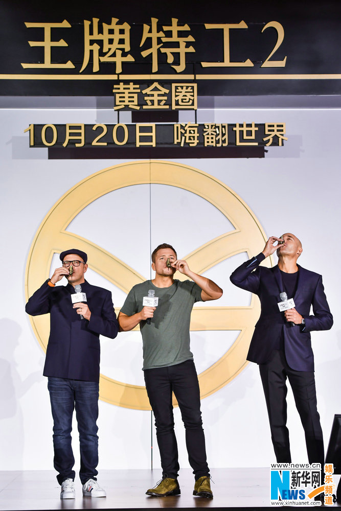 2015年前作《王牌特工:特工學(xué)院》橫空出世,以其風(fēng)格鮮明的優(yōu)雅暴力美學(xué),和一本正經(jīng)的幽默風(fēng)格,成為年度現(xiàn)象級(jí)“屠榜之作”。2017年“非典型特工電影”《王牌特工2:黃金圈》重磅升級(jí),超帶感回歸!此次發(fā)布會(huì)開(kāi)場(chǎng)視頻中子彈橫飛、拳肉相殺等嗨爽場(chǎng)面讓人大開(kāi)眼界,吹響電影升級(jí)回歸的號(hào)角。導(dǎo)演馬修·沃恩攜“王牌特工雙雄”蛋蛋、馬強(qiáng)優(yōu)雅來(lái)襲,“英倫紳士三人組”現(xiàn)場(chǎng)重現(xiàn)電影中經(jīng)典“喝酒”片段,入鄉(xiāng)隨俗豪飲中國(guó)“黃金酒”。面對(duì)手中的中國(guó)傳統(tǒng)酒樽,三主創(chuàng)面面相覷一時(shí)不知從何下口,萌翻現(xiàn)場(chǎng)觀眾,熱火朝天的實(shí)力“拼酒”掀起發(fā)布會(huì)的首輪高潮。三位還現(xiàn)場(chǎng)學(xué)說(shuō)中文“干杯“齊賀影片上映,預(yù)祝票房大賣。三杯酒下肚,眾主創(chuàng)“知無(wú)不言”,全方位揭秘電影“嗨爽看點(diǎn)”。《王牌特工2:黃金圈》作為馬修·沃恩的首部續(xù)作電影,將開(kāi)啟“更高、更快、更強(qiáng)、更浪”升級(jí)格局,導(dǎo)演坦言“我實(shí)在是太愛(ài)《王牌特工》了,它就像是我的孩子,我當(dāng)然舍不得讓別人去拍續(xù)集,必須自己上!”。而蛋蛋和馬強(qiáng)則熱烈“安利”道,喜歡第一部的觀眾一定會(huì)愛(ài)第二部,這一次動(dòng)作、場(chǎng)面、角色、裝備都全面升級(jí),絕對(duì)不能錯(cuò)過(guò)。而談及電影中全面升級(jí)的黑科技裝備,幾位主創(chuàng)都各有偏愛(ài),導(dǎo)演熱衷手榴彈須后水,蛋蛋最愛(ài)攻防兩用手提箱,梅林則中意自己的暗器筆記本。三位還表示所有裝備將“更炫、更酷、更腦洞大開(kāi)”,吊足觀眾胃口,解鎖更多裝備一定要走進(jìn)影院。