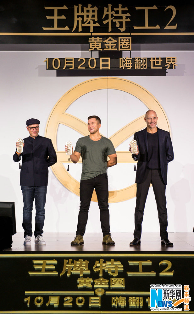 10月20日,好萊塢動(dòng)作冒險(xiǎn)巨制《王牌特工2:黃金圈》主創(chuàng)來(lái)滬,一連串驚喜輪番轟炸,演繹“王牌中國(guó)熱”!前有兩位主演塔隆·埃格頓、馬克·斯特朗隨性亮相機(jī)場(chǎng),兩人完美演繹 “鄰家少年感”與“長(zhǎng)腿大叔風(fēng)”,超萌反差爆紅網(wǎng)絡(luò),引發(fā)粉絲狂贊;繼而入鄉(xiāng)隨俗接受“黃金蟹”款待,大閘蟹霸氣大擺“王牌特工”標(biāo)志,貼合影片主題的同時(shí)兼具濃濃中國(guó)風(fēng),觀眾好評(píng)不斷。隨后,中國(guó)新聞發(fā)布會(huì)隆重舉行,導(dǎo)演馬修·沃恩攜兩位主演重磅亮相,瞬間引爆了現(xiàn)場(chǎng)觀眾的熱情,一連串驚喜亮點(diǎn)嗨爆現(xiàn)場(chǎng)。主創(chuàng)豪飲“黃金酒”學(xué)說(shuō)“干杯”、嗨聊影片再升級(jí)與超強(qiáng)卡司、趣評(píng)粉絲二次元畫作興奮不已、現(xiàn)場(chǎng)即興“搞創(chuàng)作”引發(fā)尖叫、獲贈(zèng)錦衣衛(wèi)令牌一秒穿越……眾主創(chuàng)妙趣橫生間又盡顯紳士品格,展現(xiàn)無(wú)敵魅力!現(xiàn)場(chǎng)高潮不斷,影迷對(duì)電影的期待再攀高峰。