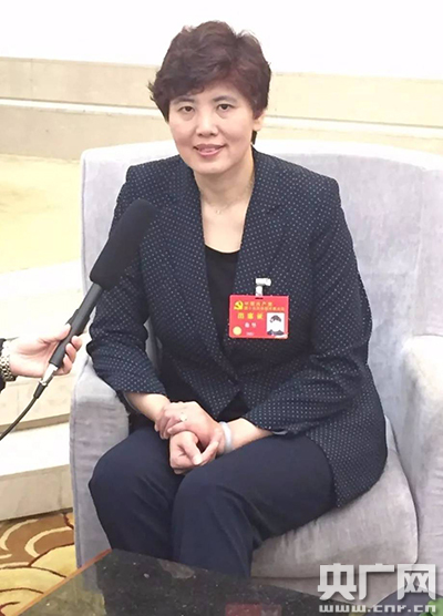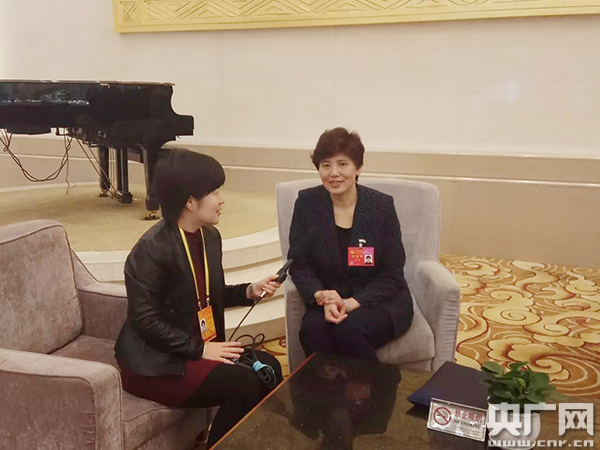 黨的十九大代表徐堅(右)接受文藝之聲記者王菲(左)采訪