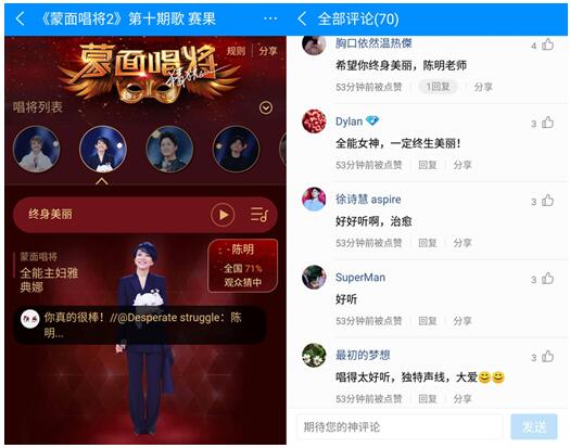 作為史上名字最長的唱將,港樂女伶“去游樂場(chǎng)散步才是正經(jīng)事”陳慧嫻的成功揭面也在蒙面舞臺(tái)上定格經(jīng)典,一曲《你怎么舍得我難過》在QQ音樂、酷狗音樂、酷我音樂的節(jié)目人氣專榜均成功闖入前三,并在酷狗音樂穩(wěn)坐TOP 1。“雙陳”的到來,掀起了網(wǎng)友們對(duì)當(dāng)年樂壇黃金時(shí)代的集體感懷,并通過QQ音樂貢獻(xiàn)大量彈幕,表示“天后就是不同”。