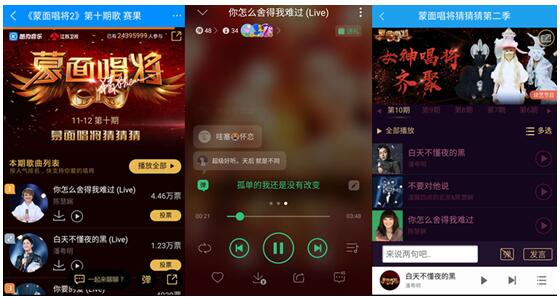 蟬聯(lián)9周收視冠軍,上周日晚播出的《蒙面唱將猜猜猜》第二季第10期節(jié)目再次洶涌來襲。除了有潘粵明為夢(mèng)踢館、蔣敦豪挑戰(zhàn)自我,陳慧嫻、陳明兩位經(jīng)典女伶的現(xiàn)身更是掀起一波回憶殺。作為節(jié)目的專享音頻合作伙伴,騰訊音樂娛樂集團(tuán)三大平臺(tái)QQ音樂、酷狗音樂、酷我音樂不僅通過高品質(zhì)零時(shí)差專輯同步見證驚喜,更帶來特色化的榜單、互動(dòng),與廣大網(wǎng)友共同追憶了音樂的黃金時(shí)代。