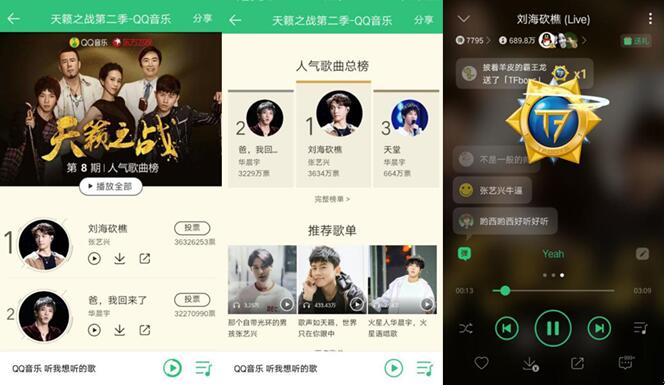 上周日的《天籟之戰(zhàn)》第二季第八期節(jié)目再創(chuàng)收視新高,天籟導(dǎo)師團(tuán)更是爆發(fā)出超強(qiáng)的“音樂(lè)能量”,在與素人的對(duì)戰(zhàn)中獲得“碾壓式”全勝。其中,大魔王華晨宇“唱說(shuō)式”《爸,我回來(lái)了》引發(fā)現(xiàn)場(chǎng)內(nèi)外“情懷殺”;“X嘉賓”張藝興顛覆性地民歌改編《劉?抽浴犯恰八嚒斌@四座。作為節(jié)目的專(zhuān)享音頻合作及互動(dòng)平臺(tái),騰訊音樂(lè)娛樂(lè)旗下三大平臺(tái)QQ音樂(lè)、酷我音樂(lè)、酷狗音樂(lè)也再度用零時(shí)差專(zhuān)輯全程記錄了當(dāng)晚不斷迸發(fā)的創(chuàng)意改編,并通過(guò)榜單、評(píng)論、彈幕等創(chuàng)意互動(dòng),吸引了大批音樂(lè)愛(ài)好者為喜愛(ài)的歌手和作品應(yīng)援。
